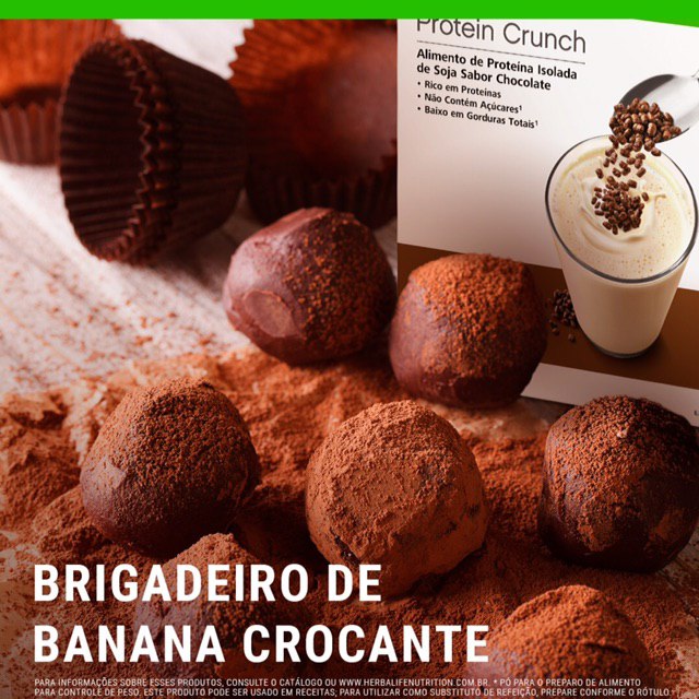 ½ xícara (chá) de Protein Crunch?; Modo de preparo:? Corte as bananas em pedaços pequenos, coloque em um recipiente de vidro e leve ao micro-ondas por aproximadamente 1 minuto. Com um garfo, amasse bem as bananas e acrescente o cacau misturando bem. Em seguida, adicione o NutreV e mexa até obter consistência homogênea. Leve à geladeira por 20 minutos para que a massa endureça. Após este período, retire da geladeira e faça bolinhas com a massa. Passe as bolinhas no Protein Crunch, coloque em forminhas e sirva. ?